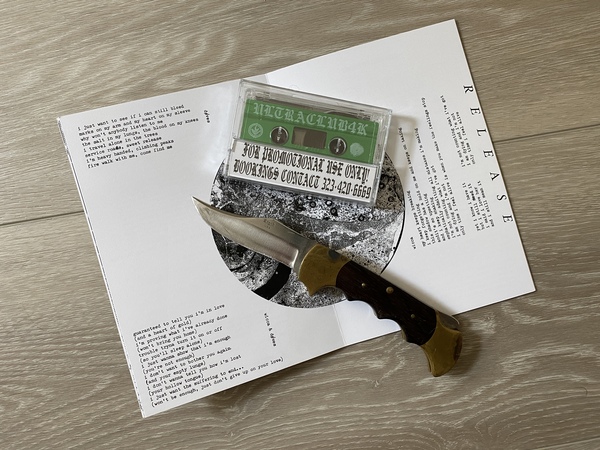 Limited to 150, full mix split onto two sides. Clear cassette with green foil backer. Zine designed by Cremation Lily includes lyrics to each track and original artwork. 24 page, full bleed A5 booklet printed locally and professionally assembled.